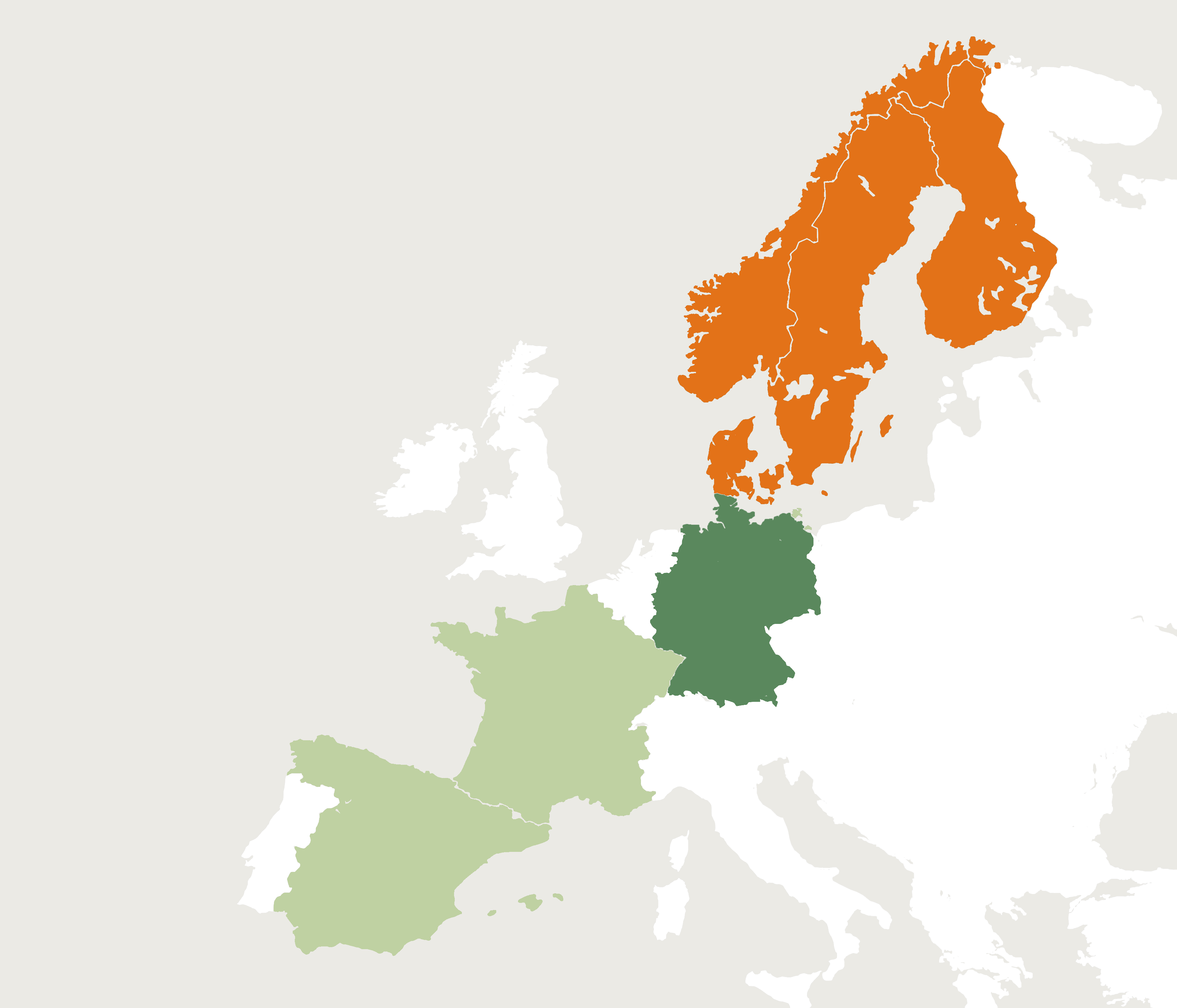 The business is organised in three divisions: Division Nordics, Division North Europe and Division South Europe, which have operational responsibility for product development, production, marketing, sales and distribution to customers